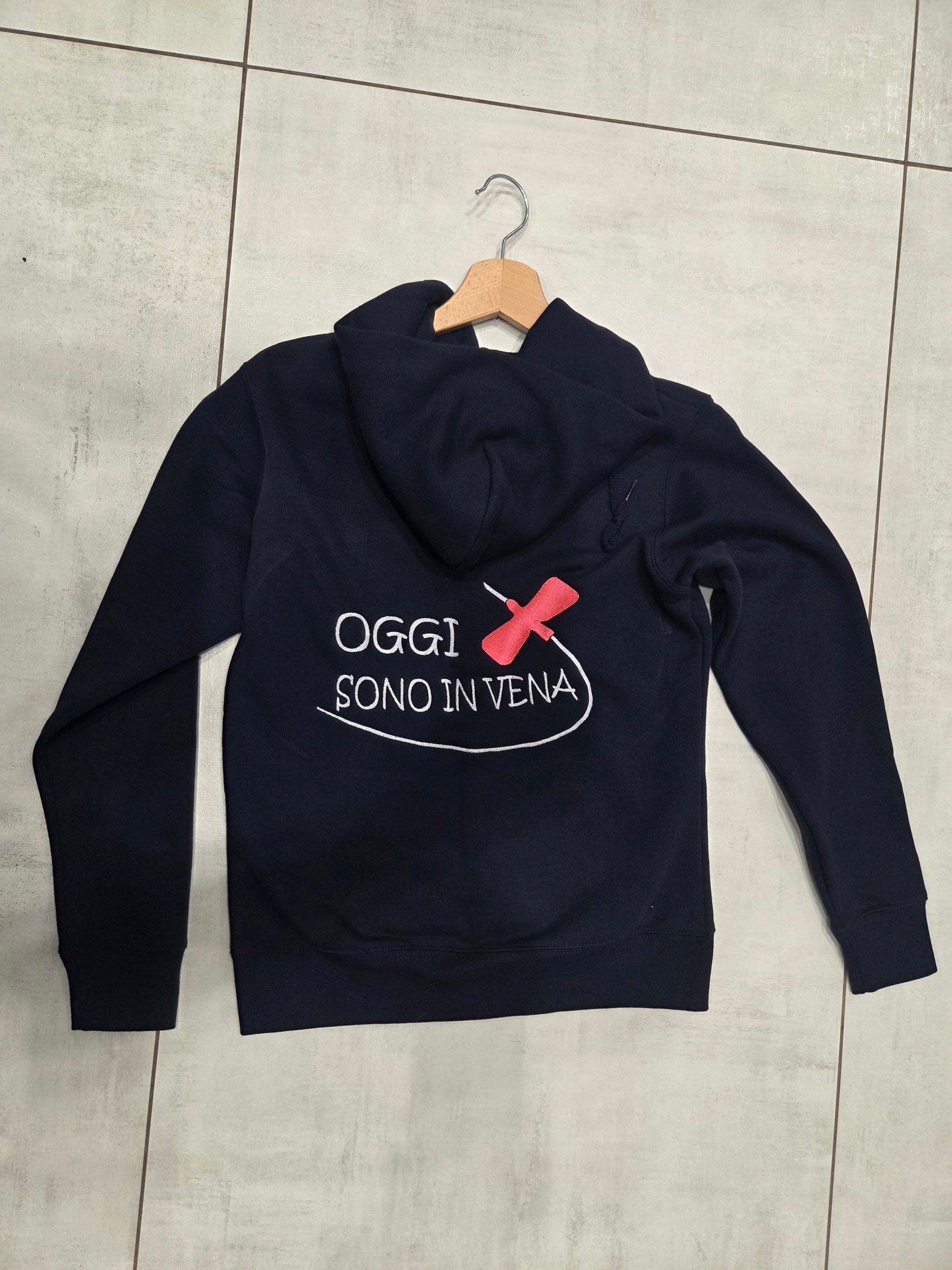 FELPA RICAMATA "oggi sono in vena" UOMO / DONNA FULL ZIP -